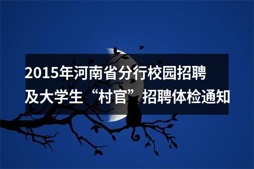 【2015年河南省分行校园招聘及大学生“村官”招聘体检通知】相关岗位: