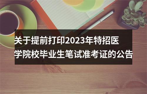 原标题:关于提前打印2023年特招医学院校毕业生笔试准考证的公告