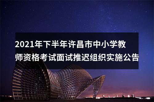 鉴于目前许昌市新冠肺炎疫情防控复杂、严峻的形势和疫情发展的不确定性,为保障广大考生和涉考工作人员生命安全和身体健康,经请示教育部研究同意,2021年下半年中小学教师资格考试面试许昌市考区推迟实施,合并至2022年上半年中小学教师资格考试面试一并组织。本次推迟面试受到影响的考生,已通过的笔试科目成绩有效期延长半年。本次面试报名费将按原缴费渠道全额退回。