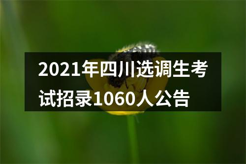 为深入贯彻习近平总书记对加强和改进选调生工作的重要指示,认真落实党的十九届五中全会和省委十一届八次全会精神,着力培养造就高素质专业化干部队伍,根据中组部《关于进一步加强和改进选调生工作的意见》(组通字〔2018〕17号)、中共四川省委组织部《关于进一步加强和改进选调生工作的实施意见》(川组通〔2018〕54号)要求,四川省2021年度选调1060名优秀大学毕业生到基层工作。现将有关事项公告如下。一、选调名额